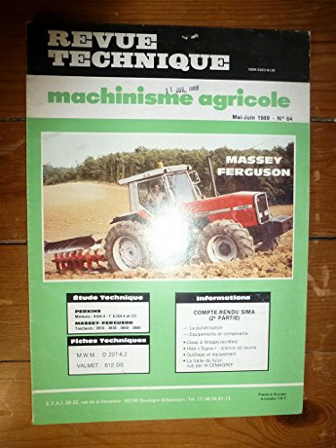 REVUE TECHNIQUE TRACTEUR AGRICOLE ET MACHINISME MASSEY-FERGUSON 3610, 3630, 3650, 3680 - Perkins 6354.4, T6.354.4 et CC RTMA0064 - Mai.Juin 1989